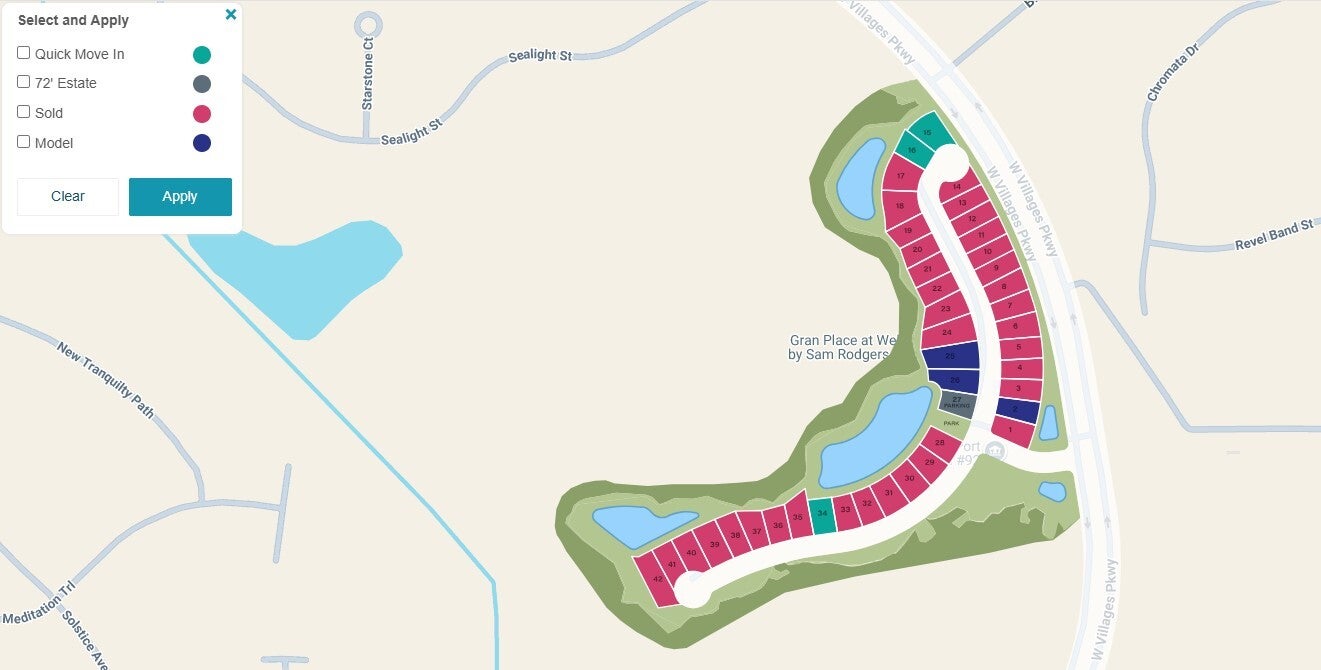 Gran Place in Wellen Park is a golf-cart friendly gated community. With limited availability left, choose from multiple floorplans for single family homes built by Sam Rodgers Homes. Enjoy lake views and a community park.